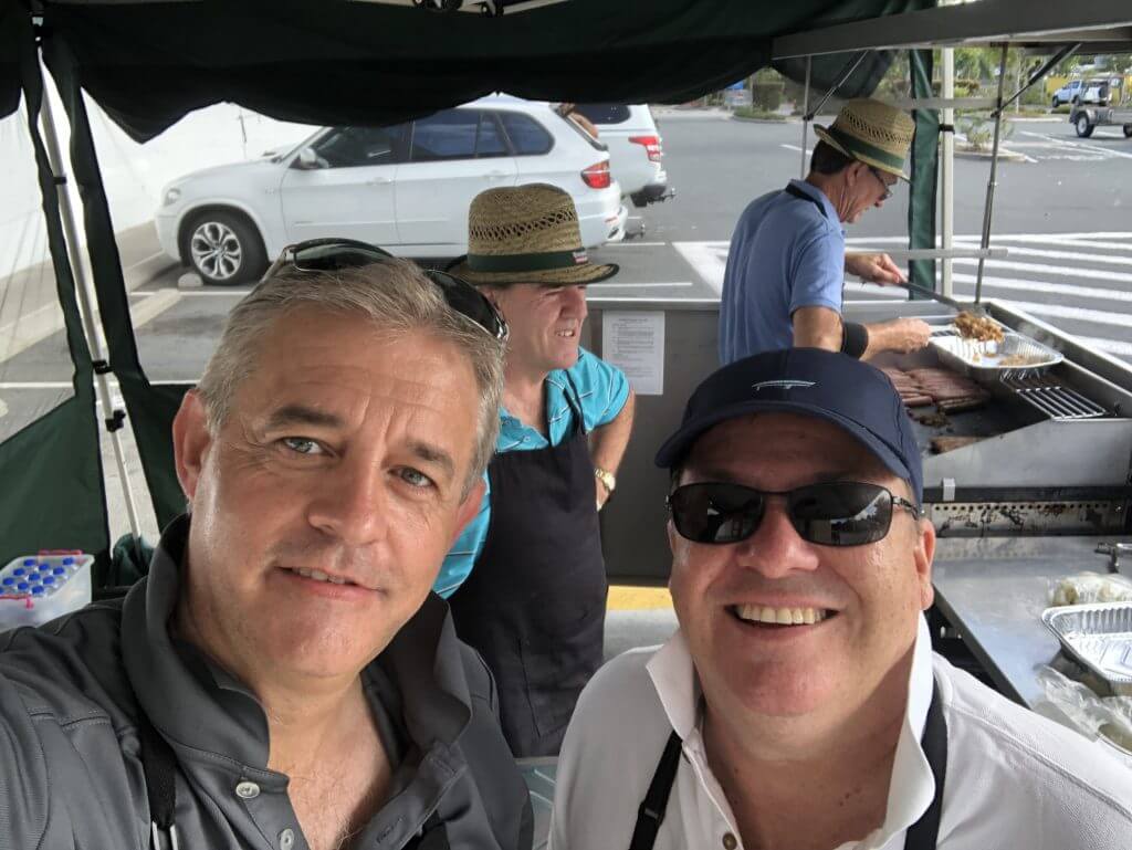 Ian, left, John, right, and some of their buddies working at a sausage sizzle.