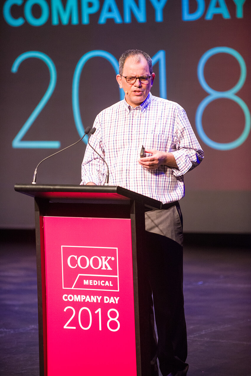 Cook Australia Managing Director Samih Nabulsi opened Company Day 2018 with a reflection of our work over the last 12 months with an overview of Transformation, quality systems, corrective and preventivie actions (CAPAs), regulatory and manufacturing. He then shared that the company focus for 2019 will be on people, employee support and development, and communication. Mark Muller, director of Finance for Asia-Pacific (APAC), provided an overview of the company’s financial position in a light and insightful way with many pictures and few spreadsheets.
