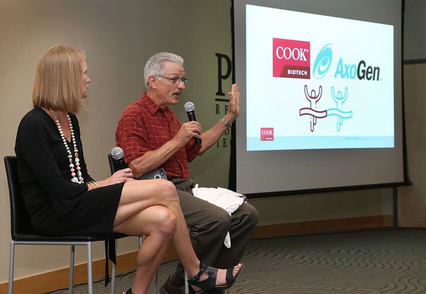 AxoGen Assistant General Counsel John Glueck provided an overview of the peripheral nervous system and how Cook Biotech-manufactured products are used to repair nerve injuries. In addition to the AxoGuard Nerve Protector used in David’s nerve-compression repair, Cook Biotech manufactures the AxoGuard Nerve Connector, which is used in nerve-transection repairs.