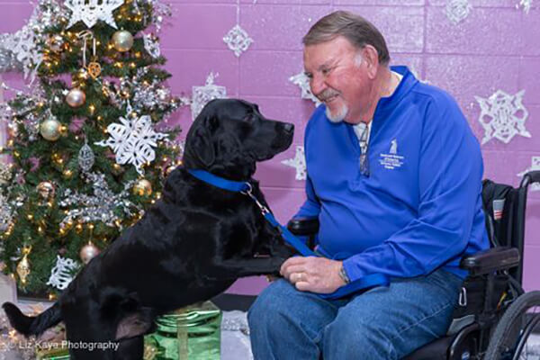 Charlie is a specially trained black Labrador Retriever who was placed with Jeff after graduating from the Indiana Canine Assistant Network (ICAN) program on December 6, 2018. Charlie, whose training was sponsored by Cook, will serve as Jeff’s mobility assistance dog, and help him with a variety of day to day tasks.