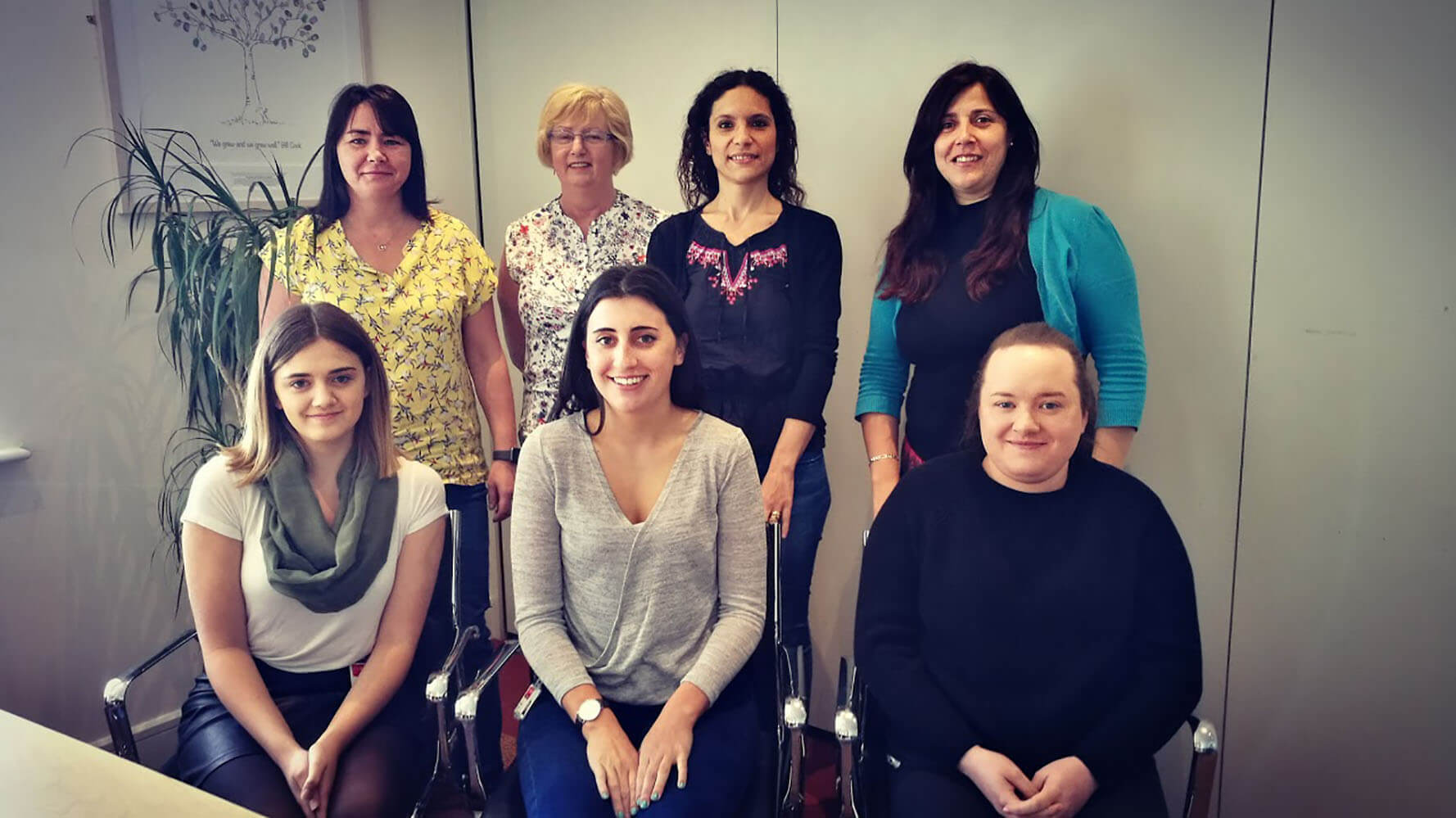 Front row, from left: Sarah Scanlan, Lizzy Kiely, and Aoife Sheils. Back row, from left: Angela Dunworth, Maria Ryan, Eugenia Mangan, and Maria Herrara.