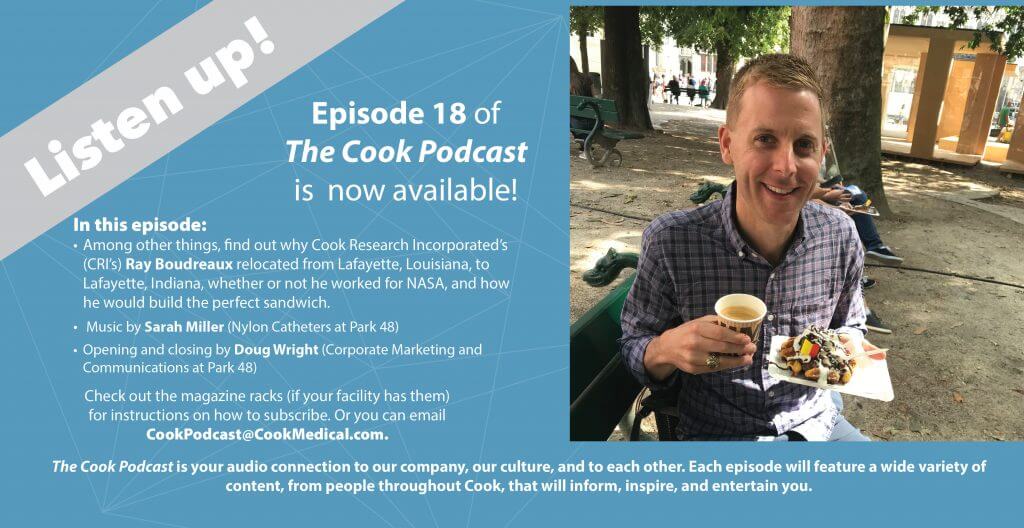 The Cook Podcast is your audio connection to our company, our culture, and each other. Each episode will feature a wide variety of content, from people throughout Cook, that will inform, inspire, and entertain you.
