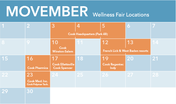 In a handful of our U.S. locations, we will be partnering with the Cook Wellness team as part of the annual wellness and benefits fair. Stop by to learn more about men’s health issues and create fun photo booth pictures (props and accessories will be provided).
