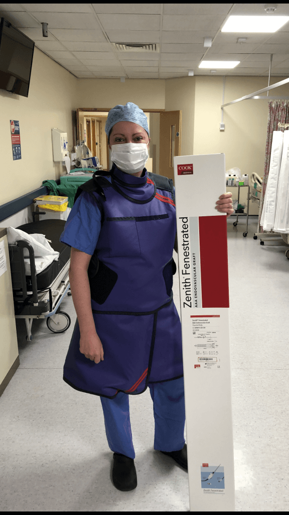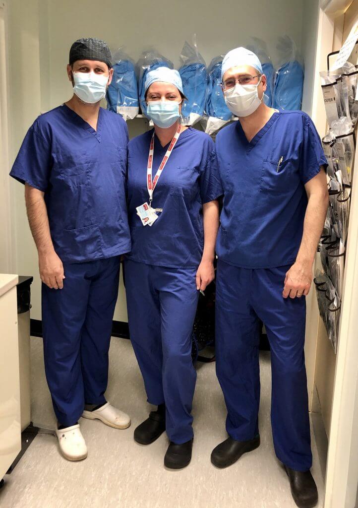 Heather supported an elective fenestrated endovascular aneurysm repair in a private hospital with Donald Adam (left), consultant vascular & endovascular surgeon, and Martin Claridge (right), consultant vascular & endovascular surgeon.