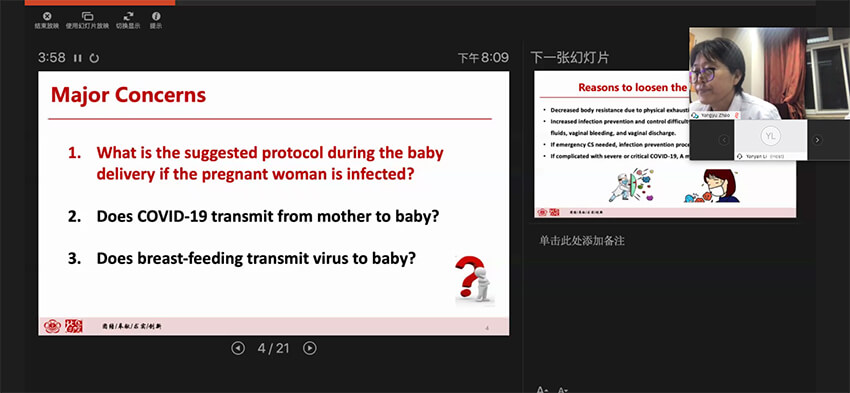 We could not have been more fortunate, as Vivian Li of the Cook China team was able to arrange a video conference with presentations from multiple subject-matter experts (SMEs) from across China. On Friday, March 27, presentations were given to the American OB/GYN leadership, including the current president of the SMFM and other senior leaders from around the US. They shared their experiences in the management of COVID-19-positive pregnancies, including one that summarized the experiences and best practices developed by a major labor-and-delivery hospital in Wuhan, China. The presentations were followed by a lengthy question-and-answer session.