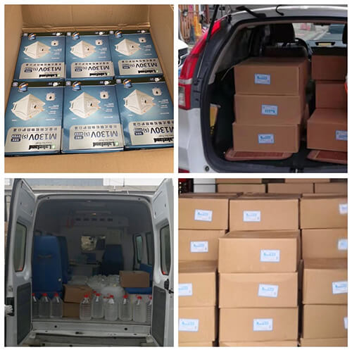 After several days of hard work, we finally were able to deliver boxes of surgical masks, protective gowns, gloves, goggles, and ethanol to the needed hospitals in Wuhan through the local volunteering team.