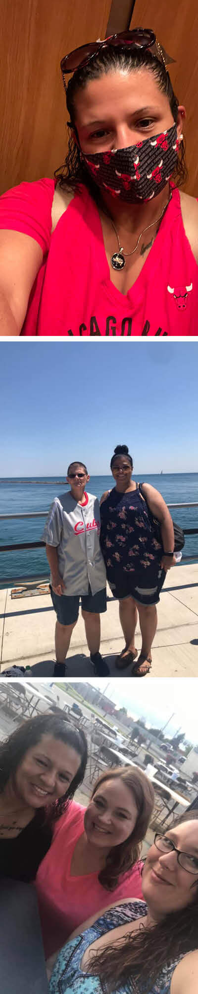 Top photo: Samantha Clayton. Middle photo: Samantha and her friend. Bottom photo: Samantha, her mom, and her sister, Becky.