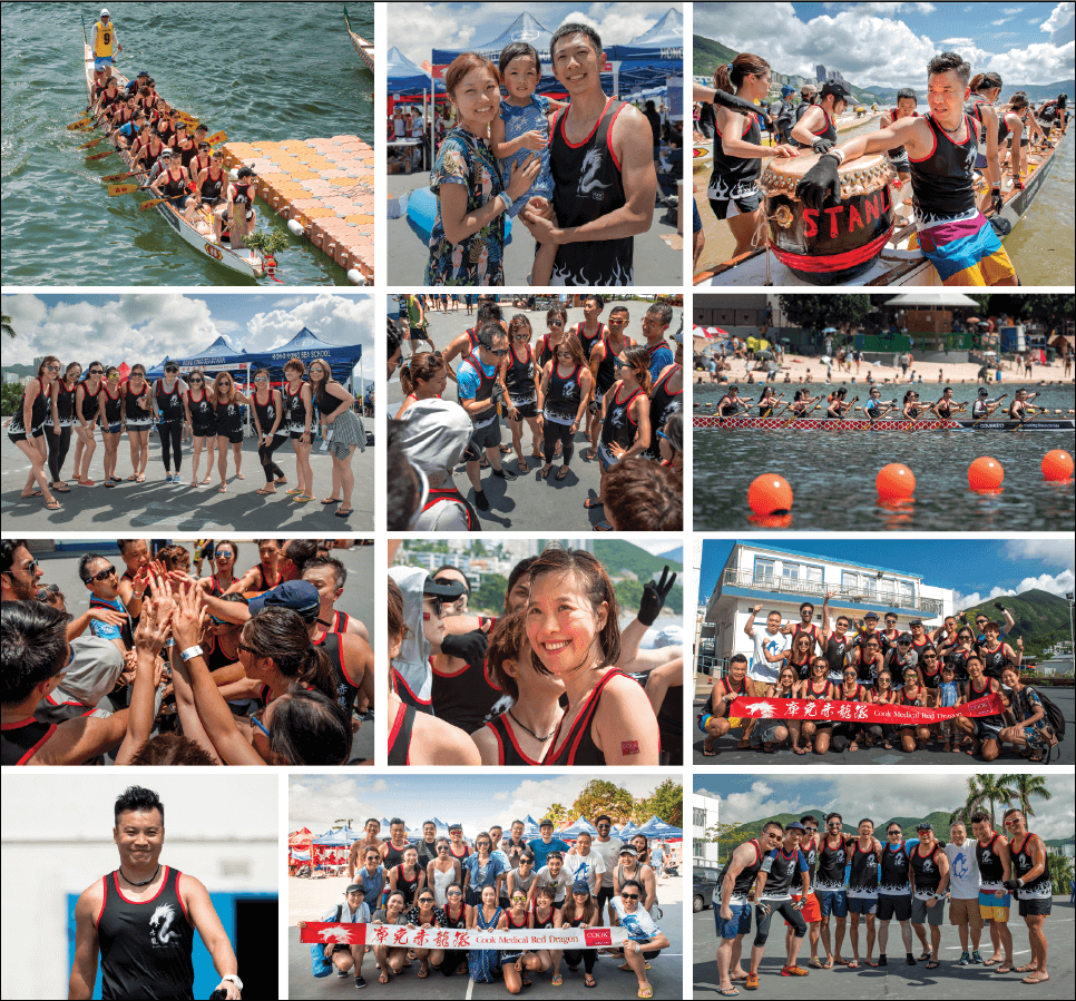 Cook Hong Kong’s Red Dragon team circled up before the race; after months of hard work and difficult training, competition day had finally arrived. On June 7, Cook’s 18 paddlers and drummer put their hands together and celebrated how far they had already come.