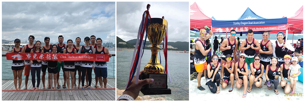 Overall, after months of spending time together and training hard with one another, the Cook Hong Kong Red Dragon team members developed close-knit bonds with each other. Below are some photos of this dedicated group of friends and coworkers from the dragon boat race day and festival.