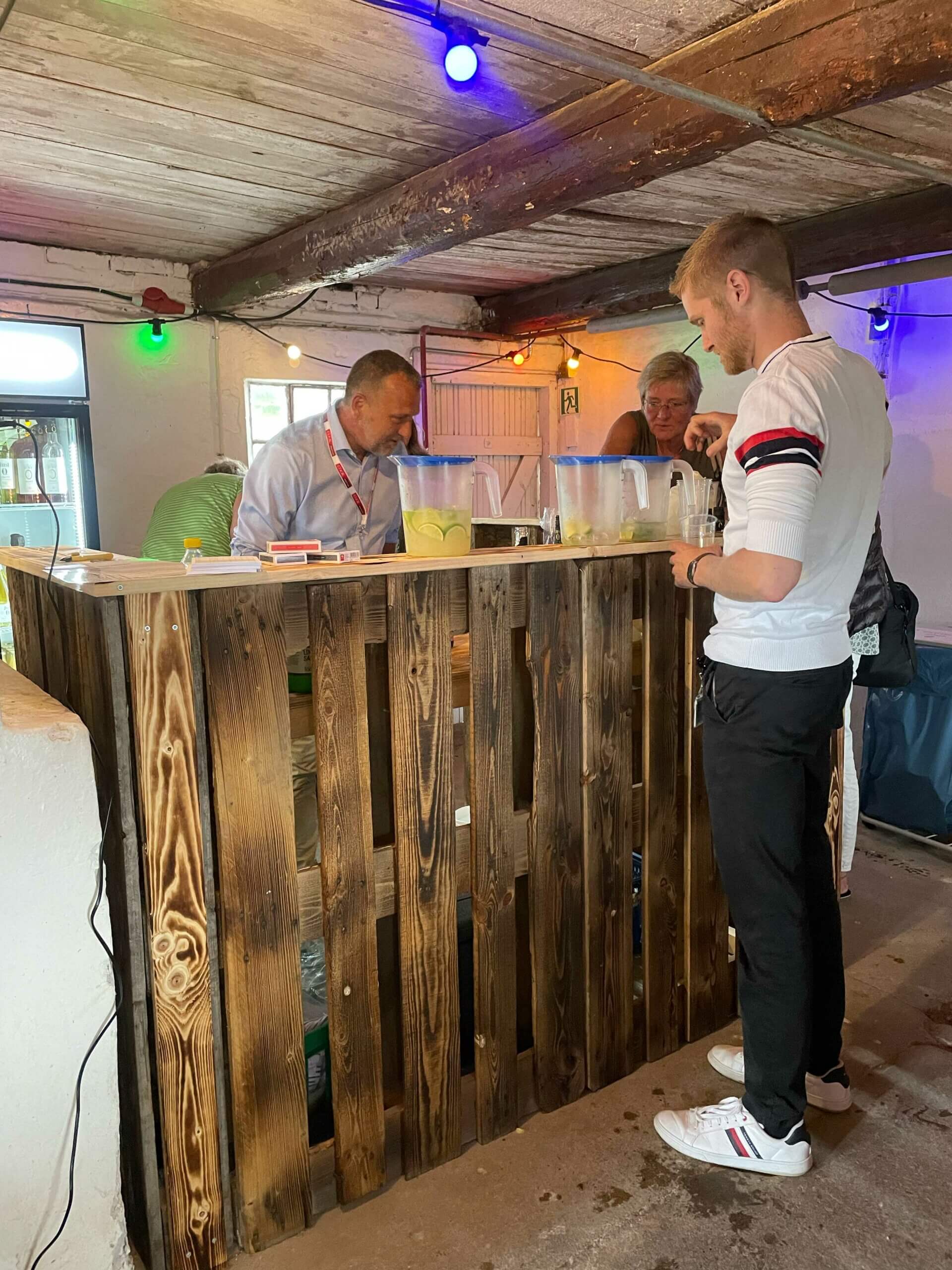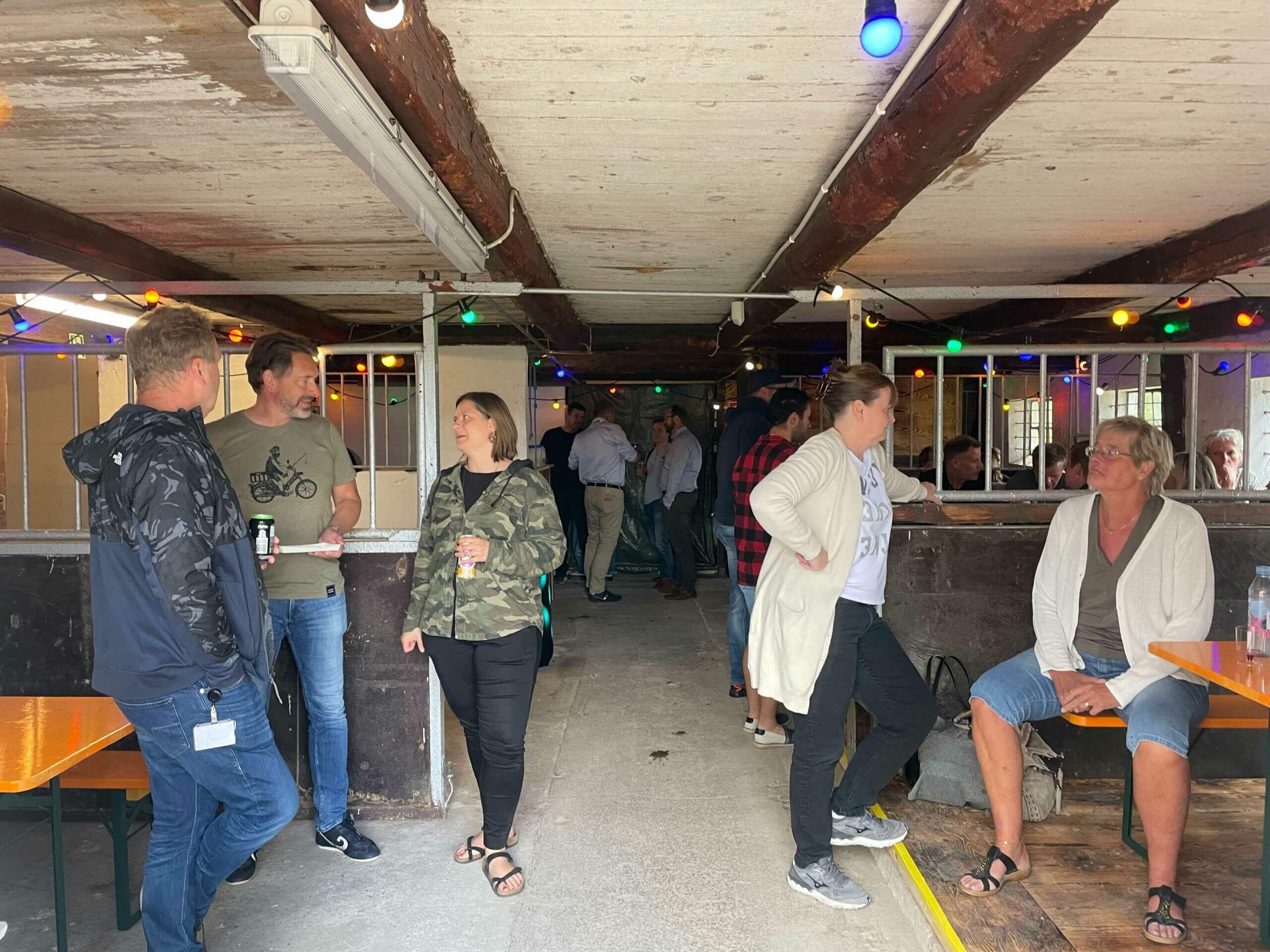 While the original plan had been to host these events in the canteen, Ole suggested we use the farm, a small farmhouse with an adjacent stable and barn located right next to the WCE facility. WCE purchased the farm years ago and has kept the house for meeting rooms and the barn and stable primarily for storage. With the new idea in place, the stables were cleared, everything in them was sold, and the Facilities team did a massive job cleaning and upscaling the location with flooring where needed and building and installing a pallet bar and pallet furniture.