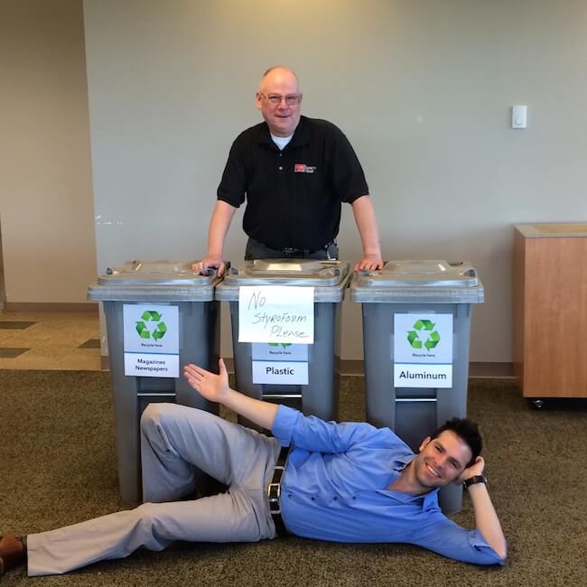 Once that program was running successfully, Paul set his eyes on a new goal: the CMI cafeteria. Recycling in a cafeteria is slightly more involved (read: grimy) than handling office waste, but Paul wasn’t going to let that stop him. He got the cafeteria staff on board to recycle, and he spent hours digging through waste containers to sort the materials. The cafeteria staff now ensures that all recyclable materials go into the recycling bins.