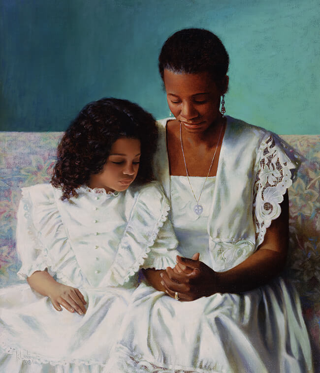 “When I was nine, my mom enrolled me in a painting class,” Keith recalled. “The other students were all senior citizens who wanted to paint landscapes. My teacher, Edna Jennings, was very good for me because she let me go my own way and follow my own interests, which was painting portraits.  And she showed me tips and tricks, like how to create textures. The most dramatic thing that happened that year was that she helped me sell one of my paintings for $10. That made a real impact on me, that you could earn money through painting.”