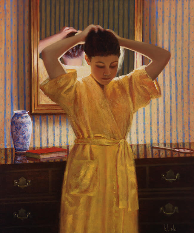 Asked how he preps and plans for a painting, Keith said, “I paint from photos that I take myself whenever possible. I have to take several photos in order to get the right lighting, and to let the person’s personality come out. I take 50 to 60 photos in a short period of time, instead of having a subject sit for long periods of time. My subjects often bring their spouses or parents, which helps them relax. I enjoy painting portraits, figurative art, and landscapes.”