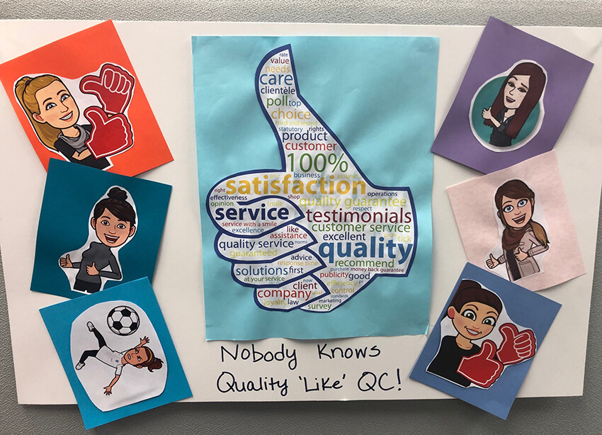 Throughout the month, the Quality team asked employees to consider what the idea of quality meant to their departments. Each department responded in poster form, with designs and messages that reflected the many ways high quality standards affect the work and culture at MyoSite.