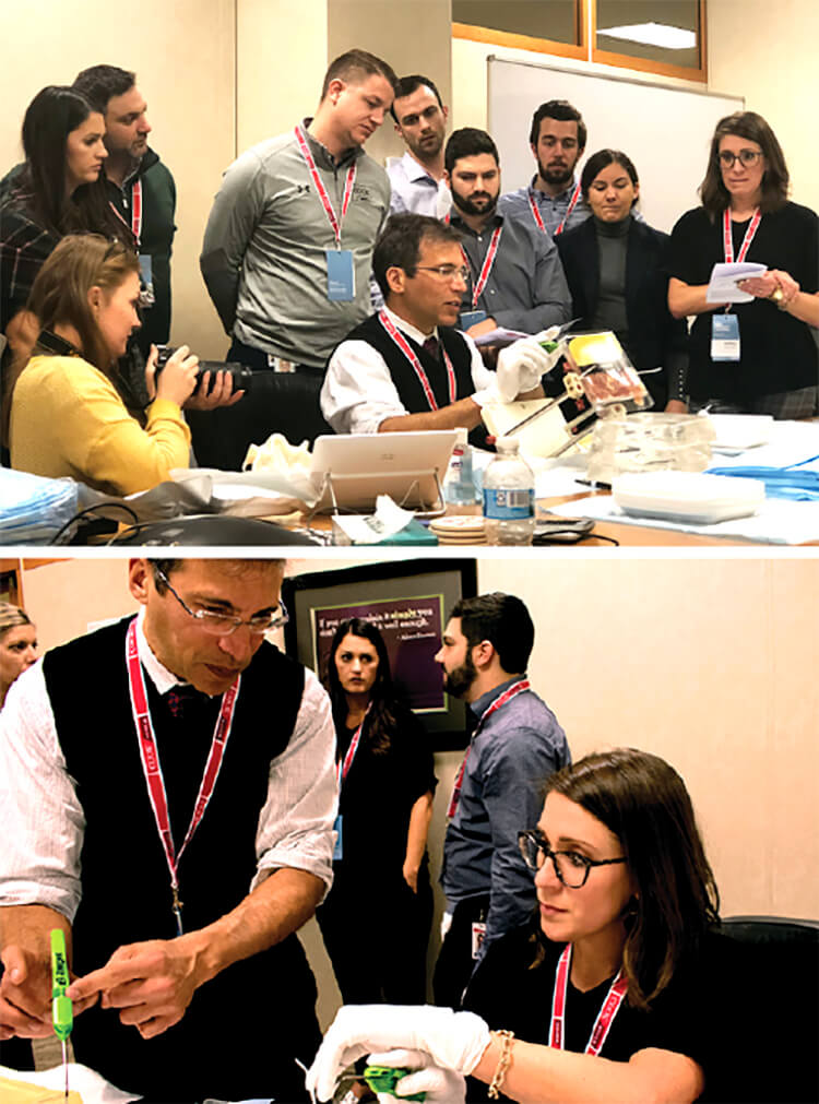 On January 31, Zelegent’s chief executive officer, Alexander Arrow, MD, came to Park 48 to teach OHNS district managers (DMs) about the history of Zelegent and Elevo and the Elevoplasty® procedure. Hands-on training was held in the form of a raw chicken lab in which the DMs were able to deploy the Elevo suture.