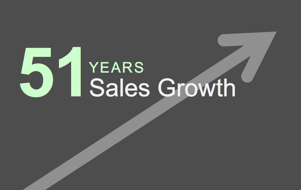 So let’s get started with some of the highlights. First let’s look at our sales this year. We’ve had our 51st consecutive year of growth – 5.6% over last year.