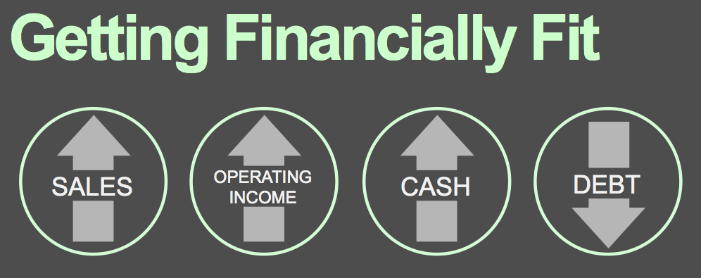 Getting financially fit is obviously a primary focus for us. The more we are aware of our sales, income, cash, and debt, the smarter we will be about managing them.