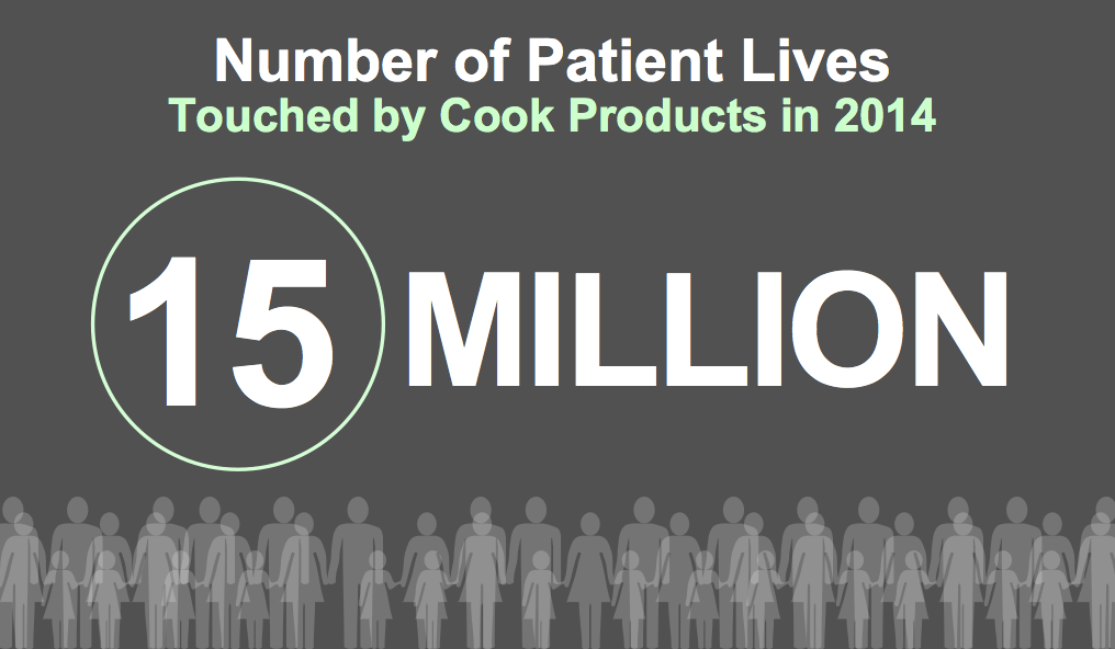 13. 15 Million Patient lives touched by Cook products in 2014 is equivalent to approximately one patient EVERY TWO SECONDS! Wow!!!