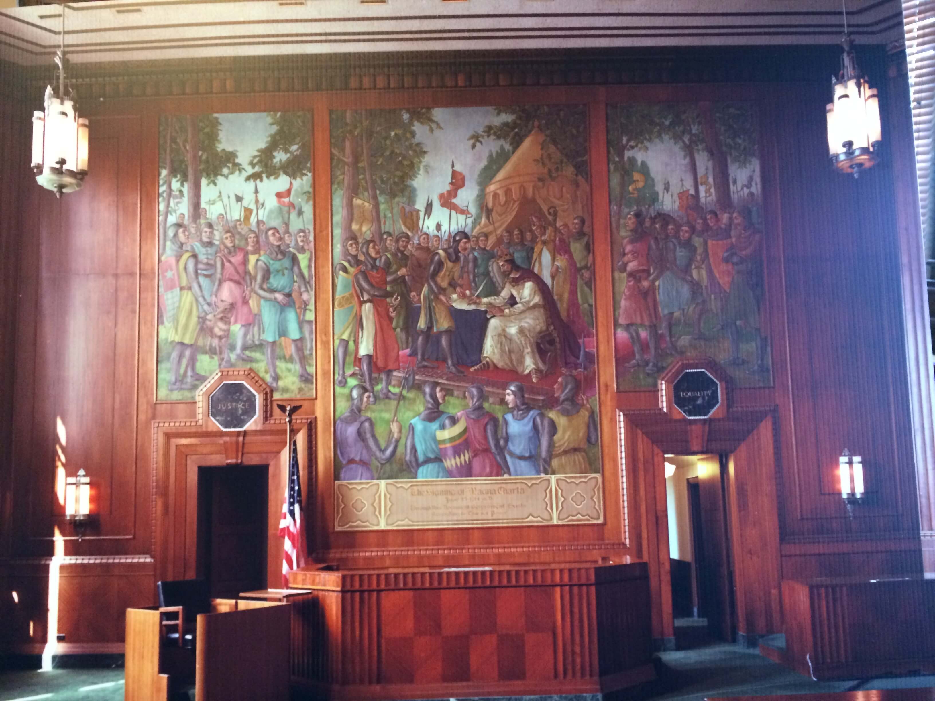 Magna Carta was essentially a treaty or agreement between King John of England and his barons. The rebellious barons were so fed up with the King’s particularly cruel and random ways that they even captured the town of London. King John had already distinguished himself as a terrible ruler when, as Prince John, he tried to usurp his brother King Richard’s throne while Richard was away fighting. (This is the Prince John, the phony King of England they sing about in the Disney movie I mentioned and probably the reason no British king since has ever taken the name John, including the newest heir to the throne.) By the year 1215, the barons demanded that the King put his seal on a charter agreeing to follow the law of the land and basically treat people fairly (among other issues that mattered to the barons but were hard for anyone else to understand). The King had no choice, really, if there was to be peace.