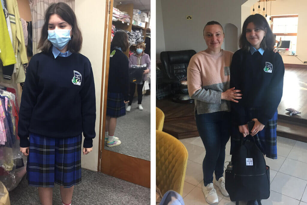 On the morning of March 23, 2022, we went to the airport. At 10:05 am we were on the plane and on our way to Dublin. In two hours we had landed. We passed passport control, and, together with other Ukrainian people, we went to the refugees’ center. There, we completed all our documents for getting a PPS number (Irish Social Security number) to remain legally in Ireland. After we applied our form, the Primark clothes company gave us some new clothes and other things. While we were in the refugees’ center, there was free food, drinks, and fruit for us. The people who work there were very kind and very polite to us!