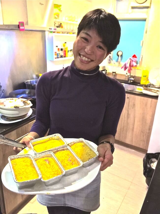 To make this dish perfect, Takashi brought ingredients from Japan, including a sauce specifically for Okonomiyaki. It tasted very authentic. Some said it was even better than in some restaurants in Japan and begged Takashi for the recipe.