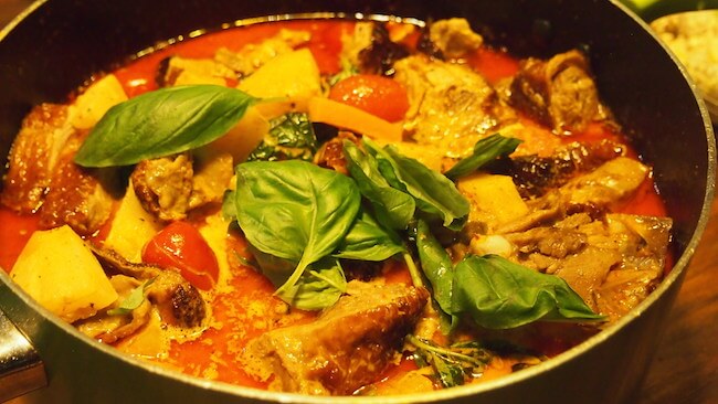 Thai curry is alluring with its layers of flavor—spices, herbs, the sweetness of fruit, and coconut milk. Kaffir lime leave and red curry paste were unique ingredients that are not easily found. Chanya managed to bring them to Hong Kong. With this dish, Chanya brought us to Thailand!