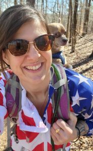 Miranda and her rescue dog Drake enjoying a hike.