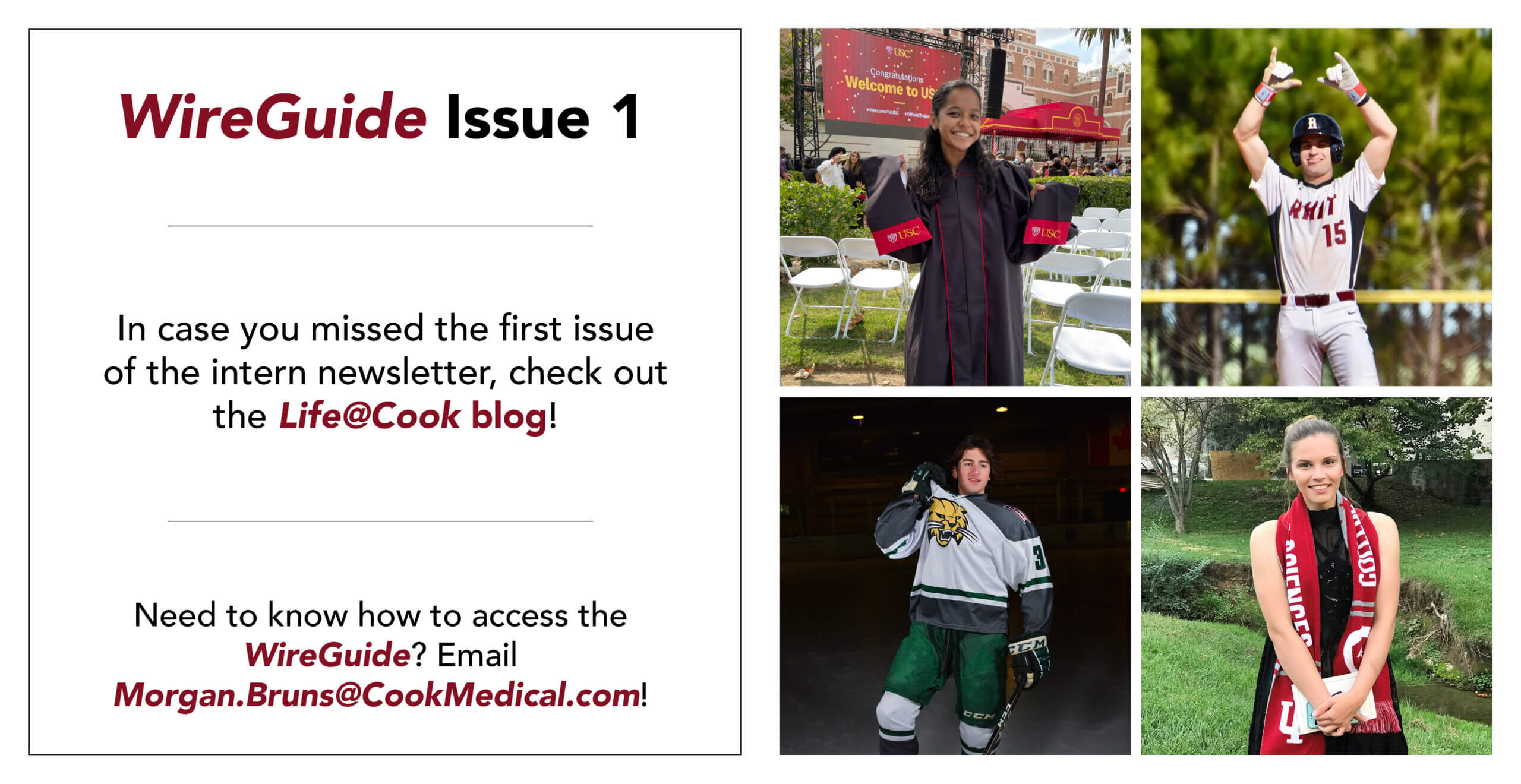 The WireGuide is a digital newsletter that was created in 2017 by a group of marketing interns. With intentions of connecting the other interns with each other, they created content surrounding the other interns’ lives. The WireGuide stopped in the summer of 2020, as there wasn’t an intern program due to the pandemic. Two years later, we are relaunching it on a new platform. Now featured on the Life@Cook blog, the WireGuide and its stories are available to an even bigger audience. With that being said, welcome to the WireGuide!