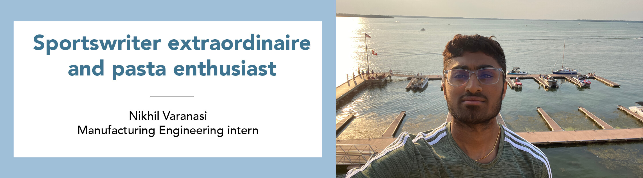 When I asked Nikhil Varanasi to tell me about himself, he told me about three interests that describe him almost entirely—biomedical engineering, cooking, and sports. When he isn’t interning, he is either cooking (usually pasta) or indulging in something sports related.
