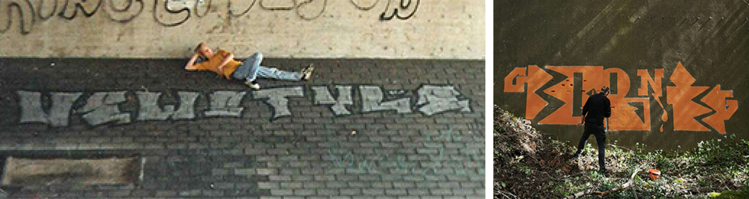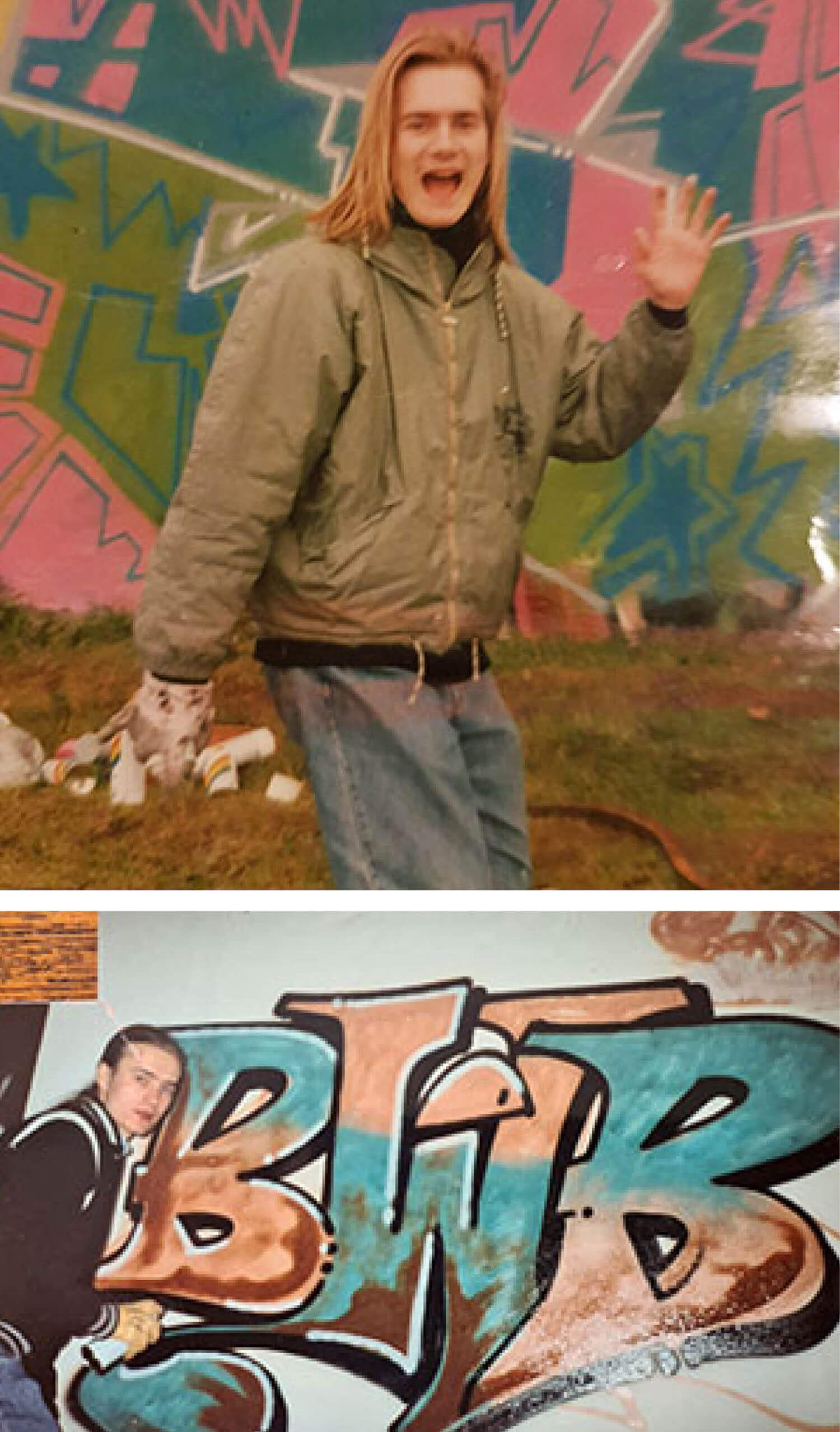 Christian and his first graffiti piece in 1987 and Christian in 2020 working on a new project.