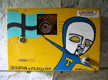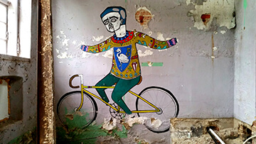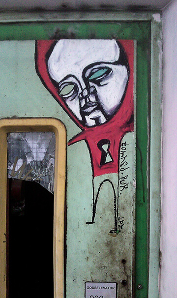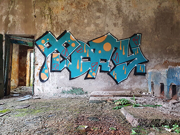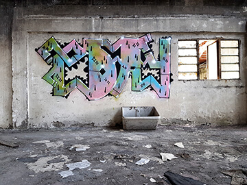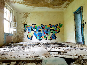 In those years, Christian began writing on walls in abandoned buildings, both in Denmark and abroad. His drawings were often inspired by the history of those constructions, about which nobody cared, as they were going to be destroyed pretty soon. This activity went on for approximately four years, and then Christian had an exhibition with his fellow painters in Copenhagen, where he had moved in the meantime. Traveling abroad was a great networking opportunity for Christian. He would meet other graffiti writers, and he would share experiences and a few laughs, too.