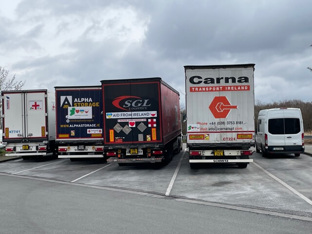 Feck, my ferry has just been delayed from 4:00 pm to 11:30 pm. At least I will get a night’s rest. I did not fancy driving the whole way on my own, so I got on to someone, who got on to someone, who got on to someone who said that he, Callum, was heading over in his semi 16-wheeler truck along with three other lorries (trucks) to the Ukrainian border. He told me the ferry details and I’m booked on it for this eve.