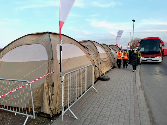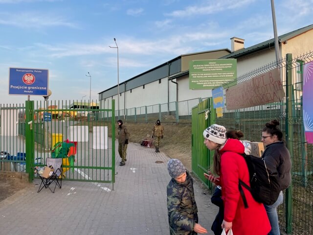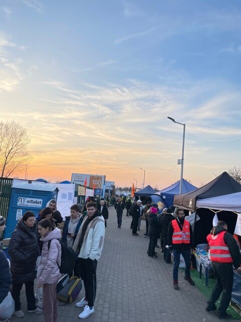 I drove behind Tommy to the border outside Przemyśl where one of the camps is located. The actual border where people walk across is quite amazing. There is a path of about 400 meters between the border gates and the road. This is lined the whole way, on both sides, with stalls from every aid organization, from most religions, and from most corners of the world. If you can think of a religion or aid organization, they were there. So, when someone comes across the border, they are inundated with toys, drinks, food, clothes—it’s like nothing I have ever seen before. When I say things were being thrown at mothers and children, I mean this literally. However, all of this assistance could not erase the look of anguish on the faces of the adults. But at least the aid brought home that they were safe on the Polish side.
